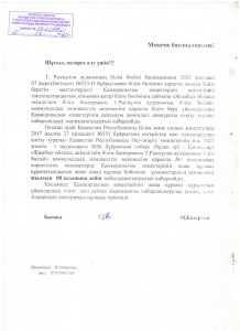 басшының м.а. Самылтыров Бауыржан Куанышбекович