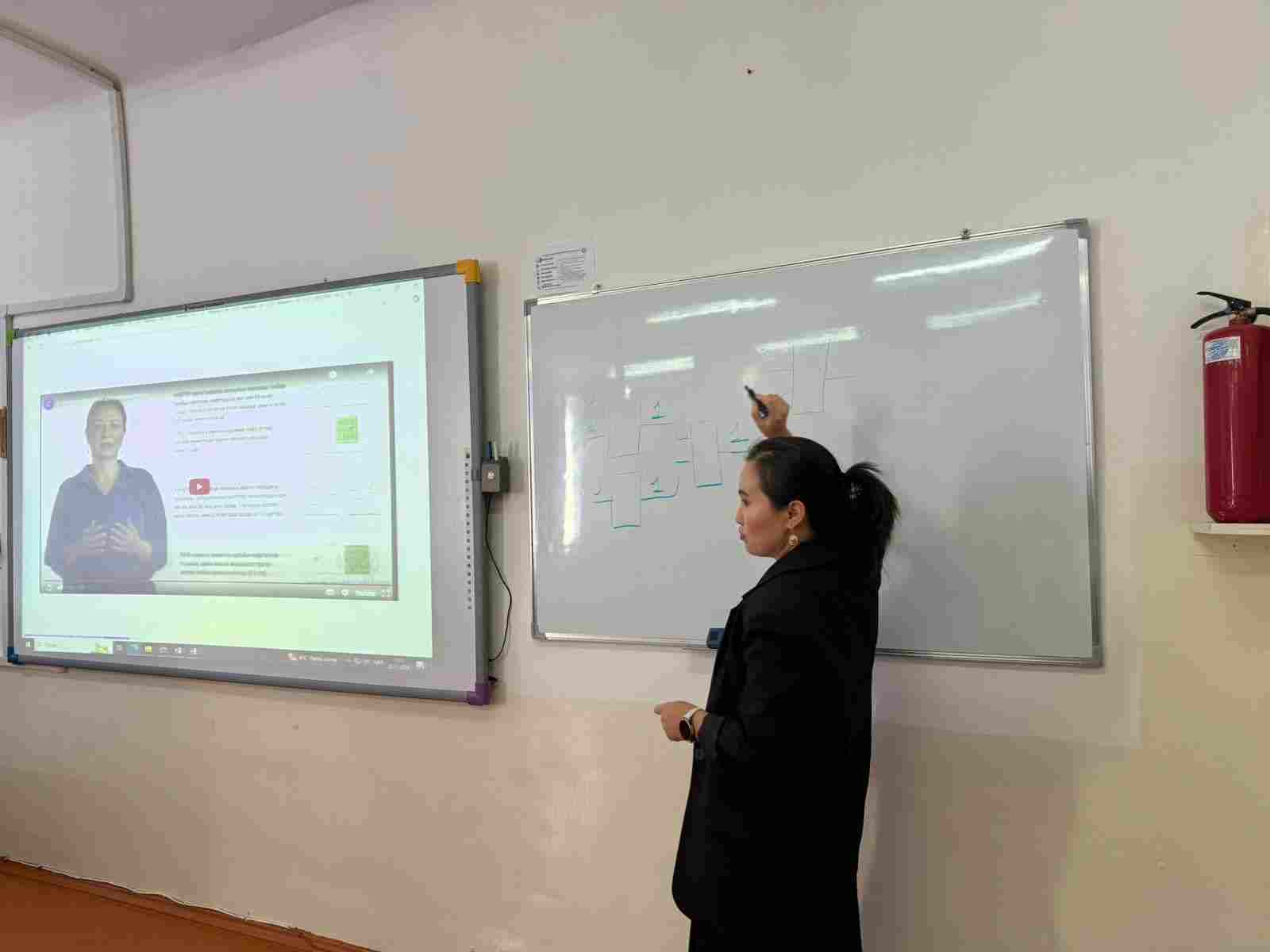 1. «Тиімді әдіс-тәсілдер-сапалы сабақ кепілі» тақырыбында ұстаздар арасында коучингті Жамбыл атындағы орта мектептің информатика пәні мұғалімі К.Ф.Умирбекова жүргізді.