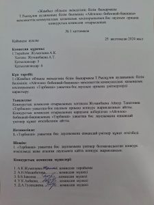 Жамбыл облысы әкімдігінің білім басқармасы Т.Рысқұлов ауданының білім бөлімінің «Айгөлек» бөбекжай-бақшасы мемлекеттік коммуналдық қазыналық көсіпорынының конкурс комиссиясының хаттамасы №1 by Акзейнет Маханбетова · 30.12.2024